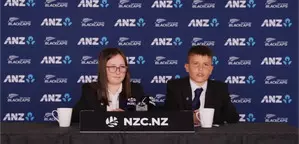 "Good morning everyone. Thank you for coming here. I am Matilda. I am Angus. And today, it will be a pleasure to announce you the Black Caps squad for the ICC T20 World Cup in West Indies and USA," the kids said.