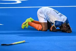 Paris, Aug 7 The Indian men's hockey team played its heart out but went down 2-3 to World Champion Germany in the second semifinal at the Paris Olympic Games here on Tuesday, the players falling onto the turf with tears in their eyes. India’s hunt for their first gold medal in 44 years came to a heartbreaking end as Shamsher Singh shot over the crossbar with what was the last hit of the day, missing the equaliser by inches. India were hoping to reach the final for the first time since the 1980 Games in Moscow.