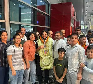 New Delhi, May 15 Former Olympic medallist wrestler Sakshi Malik on Wednesday welcomed fellow grappler Nisha Dahiya at the Delhi airport upon her return from Istanbul, Turkiye, where she sealed the Paris Olympics quota in the women's 68kg category.