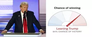 New York, Nov 6 The famous election prognosticator, New York Times’s “Needle”, was projecting an 84 per cent chance of a Donald Trump victory with about 295 electoral college votes based on its data at 10:30 p.m. Tuesday (9 a.m. Wednesday in India).